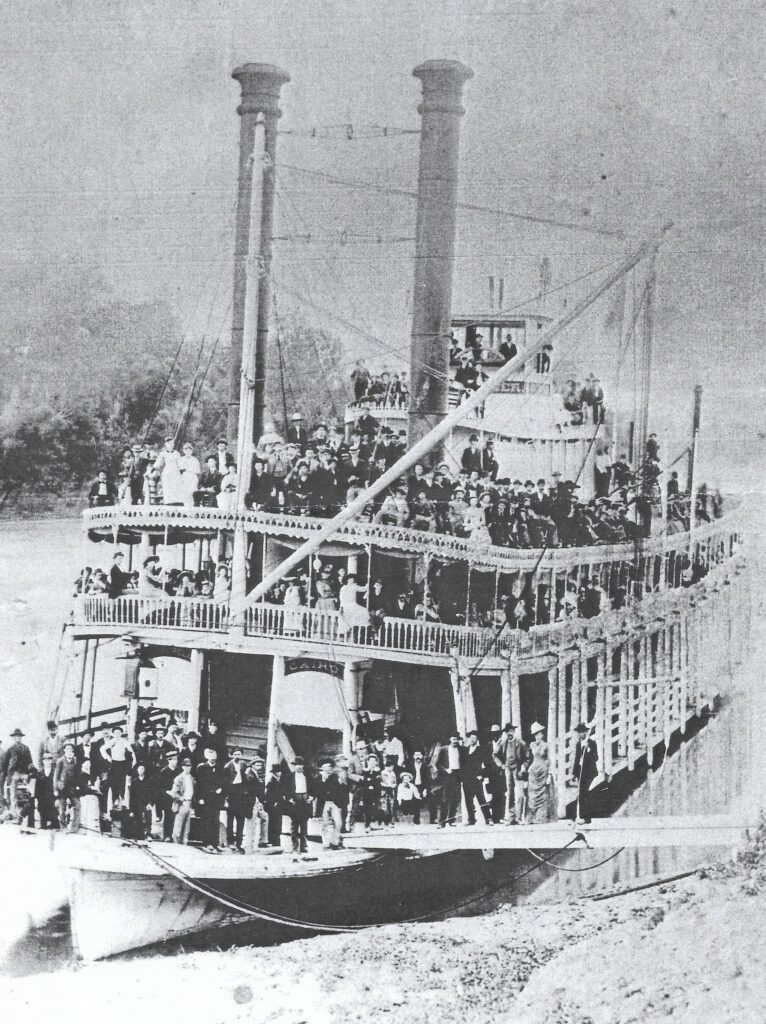 The steamboats, or packets, that once traveled the rivers and stopped at the river towns along the way, played an important role in our history. The sound of the paddlewheels and the whistle was welcomed as the boats arrived carrying passengers, supplies for the general stores, tools, farming equipment, and mail. The Joe Fowler traveled the rivers from Evansville to Paducah. The boat was built in 1888 at a cost of approximately $20,000.00. The steamer remained in operation until 1919, when it was renamed the “Crescent.”